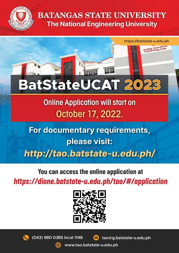 BatStateUCAT 2023 Online Application opens on October 17, 2022