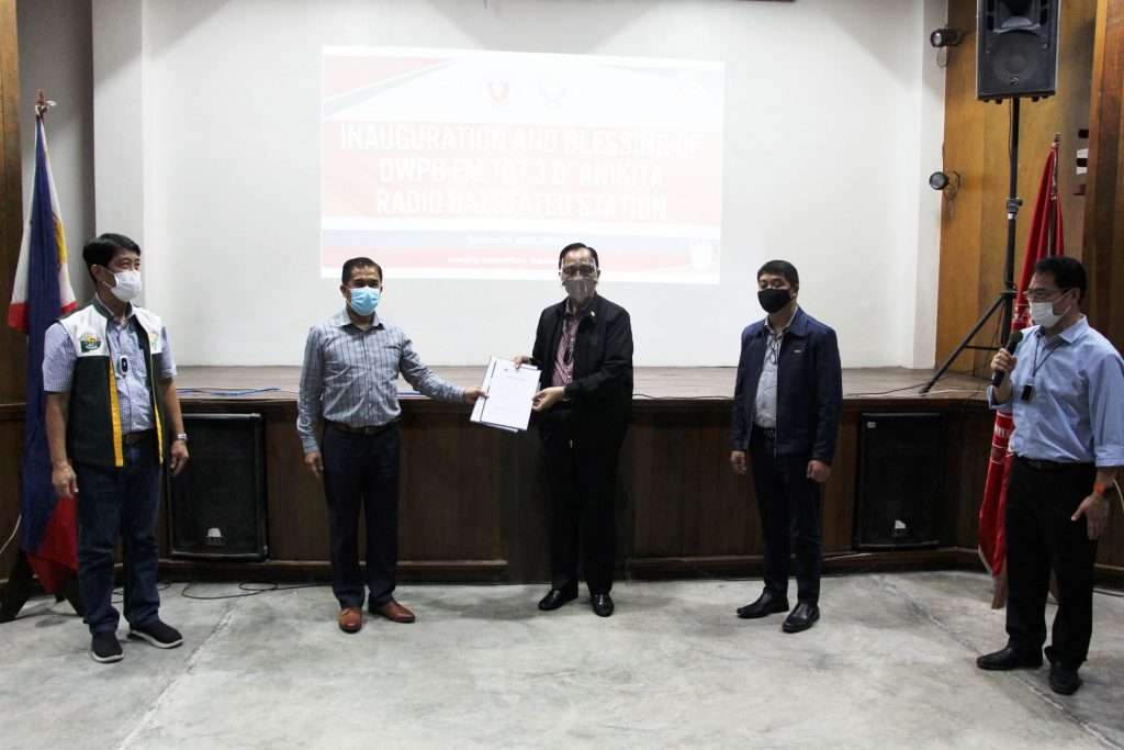 BATANGAS CITY – Department of Agriculture (DA) Secretary Dr. William Dar visited Batangas State University for the inauguration of the DWPB FM 107.3 D’AniKita radio station at the School of Development Communication building, Pablo Borbon Main I. The university received a grant from DA for the expansion of its existing radio station. It is now powered with a 100-watt FM transmitter and a full set of state-of-the-art radio broadcast equipment. This is part of a tripartite agreement between BatStateU, DA, and Forefront Broadcasting Company (FBC), which provides the training for the university’s radio anchors. In his speech, Sec. Dar highlighted the significance of the continued use of conventional technology to reach the farming and fishing community, who largely rely on radio programs for information. This new project, he said, will help not only the stakeholders of the university, but also those people who are considered the lifeline of Philippine agriculture. DA’s Assistant Secretary Noel Reyes and CALABARZON Regional Director Engr. Arnel De Mesa were also present in the inauguration. Seasoned broadcaster Mr. Francisco Flores represented FBC in the event. BatStateU President Dr. Tirso Ronquillo expressed his gratitude to DA for trusting the university in running the community-oriented radio program. He underscored the importance of the university’s radio station as a platform to augment the means of communication, information and education among people in remote areas that are hardly reached by modern technology. From L-R: ASec. Noel Reyes, President Tirso Ronquillo, Secretary William Dar, Regional Director Arnel de Mesa and Mr. Francisco Flores during the inauguration ceremonies of the DWPB 107.3 D’ AniKita radio station. After the ceremonies, Sec. Dar, Engr. De Mesa, and Dr. Ronquillo were interviewed at the radio station by one of the station’s program hosts and a core faculty of the Development Communication program, Dr. Vaberlie Mandane-Garcia. They discussed the objectives of establishing the radio program on a university setting, the role of agriculture in times of crisis, and the call for support to DA’s project, “Plant, Plant, Plant.” The radio station was blessed by Rev. Fr. Vic Cisneros. Only select representatives from DA, BatStateU and FBC attended the inauguration and blessing, following the university’s Health and Safety Protocols. Sec. Dar, Dr. Ronquillo, and Director de Mesa being interviewed by anchor Dr. Vaberlie Mandane-Garcia for the station’s first program. On stand-by is the station’s technician, Mr. Nico Manalo. Dr. Benedict Medina, the Department Chair of Undergraduate and Graduate Programs of the College of Arts and Sciences, serves as the OIC Radio Station Manager. Some of the programs to be aired initially are the ‘Buhay sa Bahay’ of Dr. Vanessa Castillo, ‘TALAKalikasan’ of Dr. Vaberlie Mandane-Garcia, programs of the DA central and regional offices, and music programs for students. DWPB 107.3 FM D’AniKita radio airs everyday from 4:00 AM to 10:00 PM.