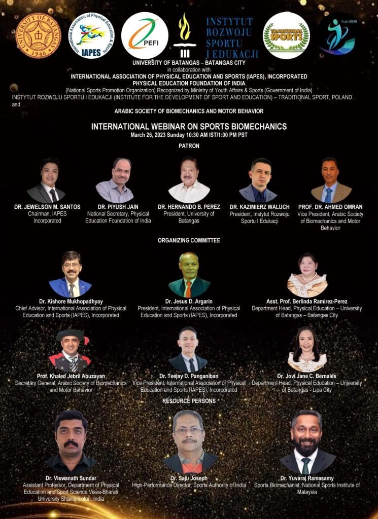 The International Association of Physical Education and Sports Incorporated (IAPES, Inc.) in collaboration with Physical Education Foundation of India, Swarnim Gujarat Sports University and Batangas State University JPLPC-Malvar College of Teacher Education was held and attended by a officials, faculty, and students on April 17, 2022.