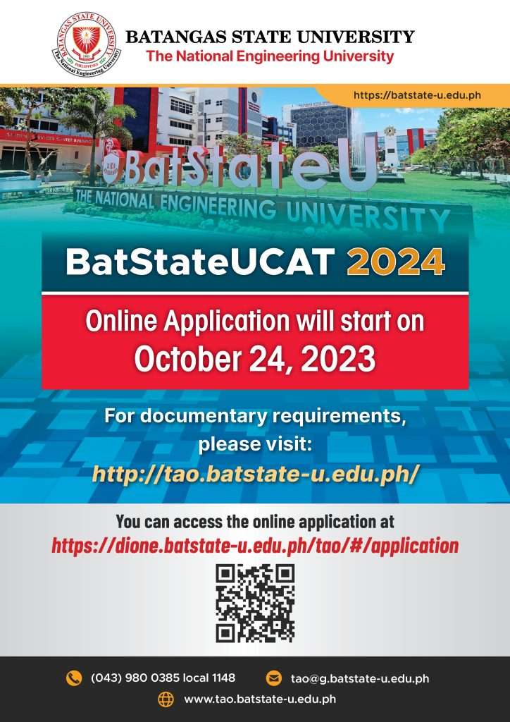 BatStateUCAT 2024 Online Application opens on October 24, 2023